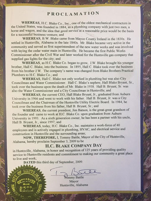 2009 HC BLAKE DAY (from 2009). Thank you Mayor Battle for the kind proclamation.